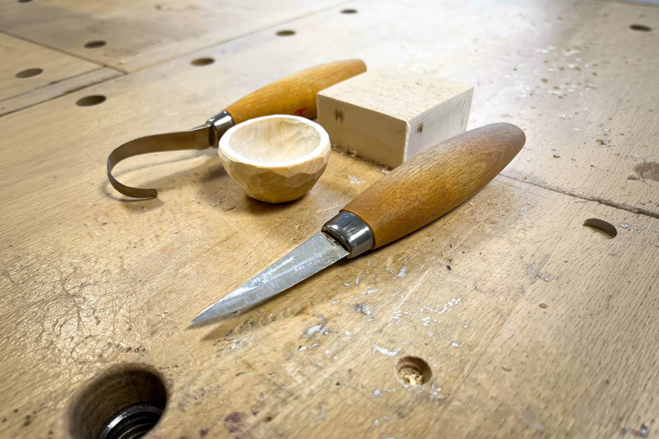 Bowls are fun to carve and can be made in all imaginable sizes. During this evening of inspiration, we will use the simplest possible tools to carve tiny bowls in linden wood, discuss carving grips, ergonomics, and how the process can be scaled up for larger projects.